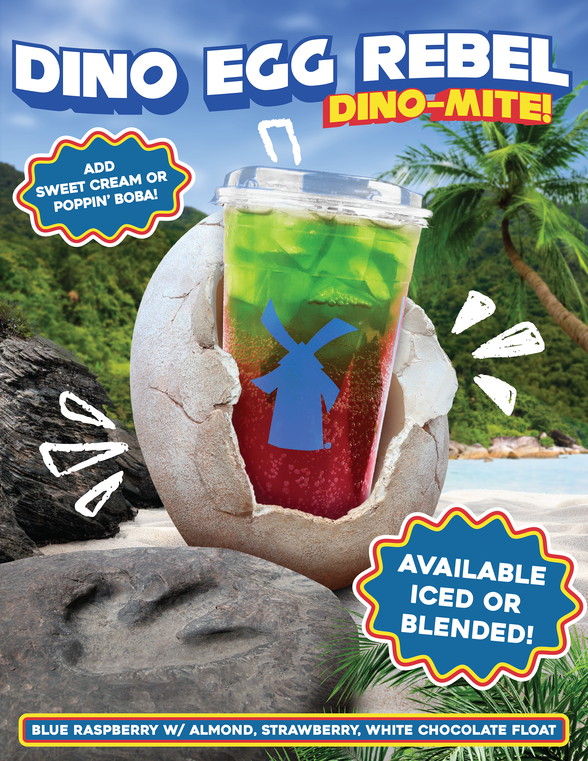 Creative exercise in creating a poster for the Dutch Bros' Dino Egg Rebel