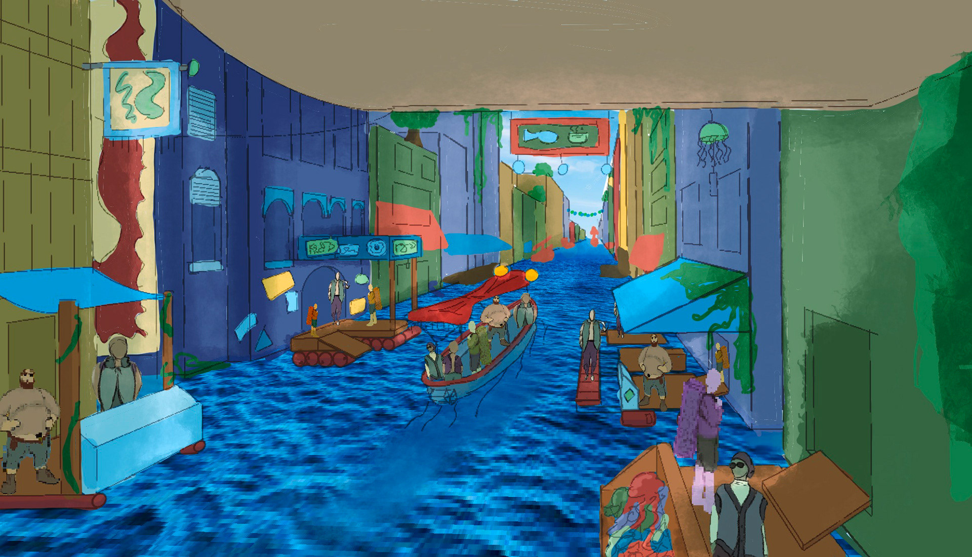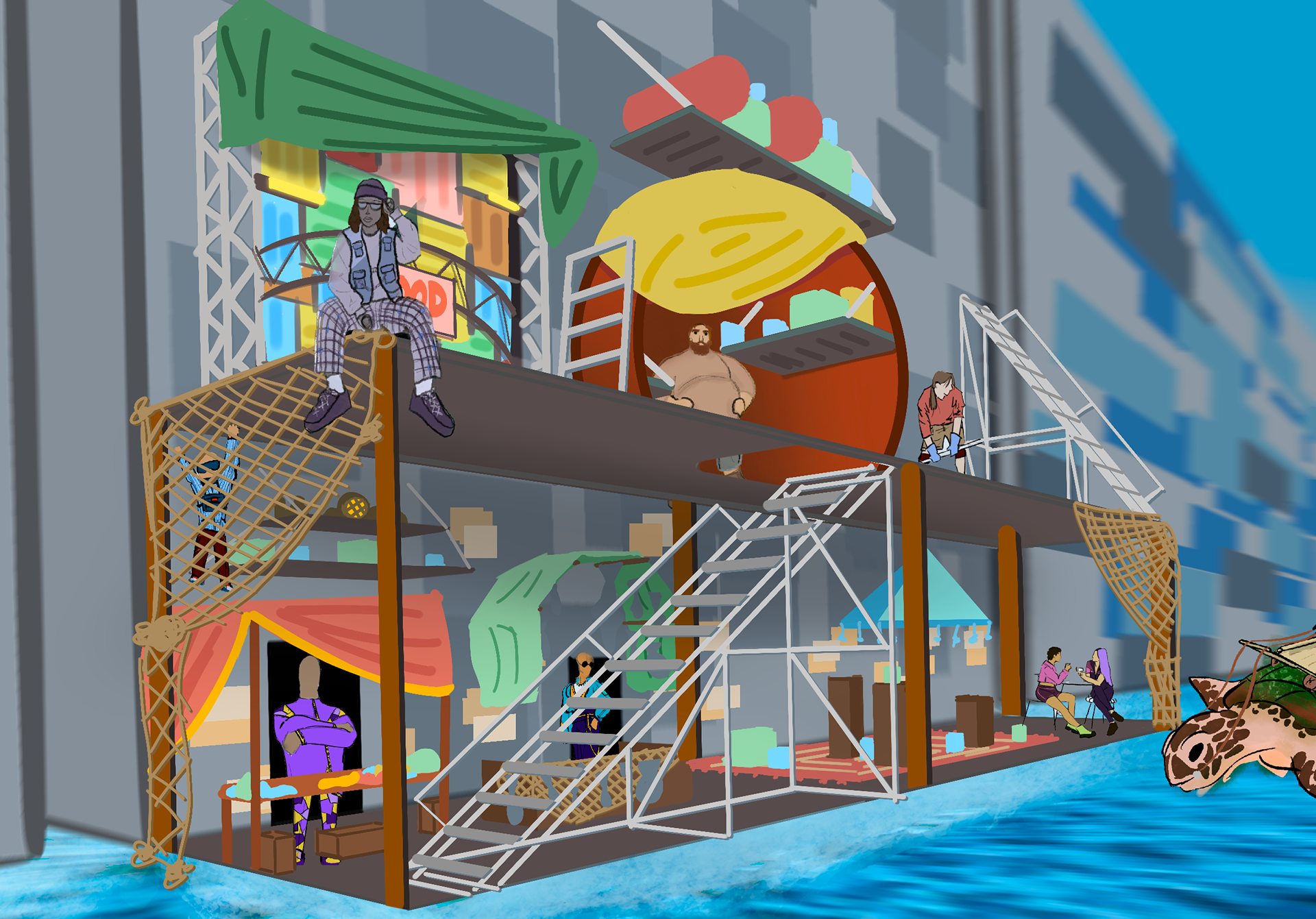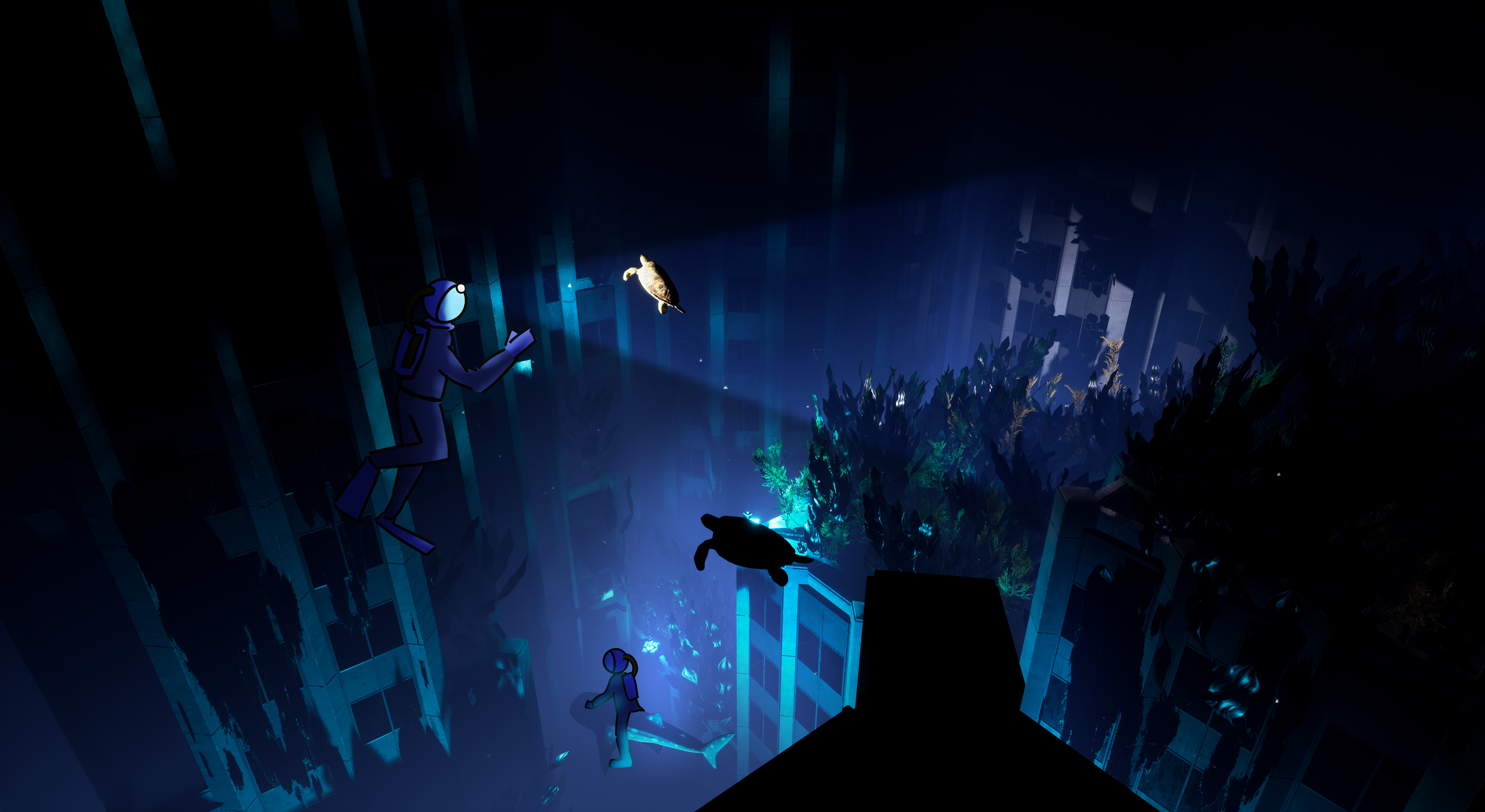 Concept art pitch for a video game about a San Francisco underwater